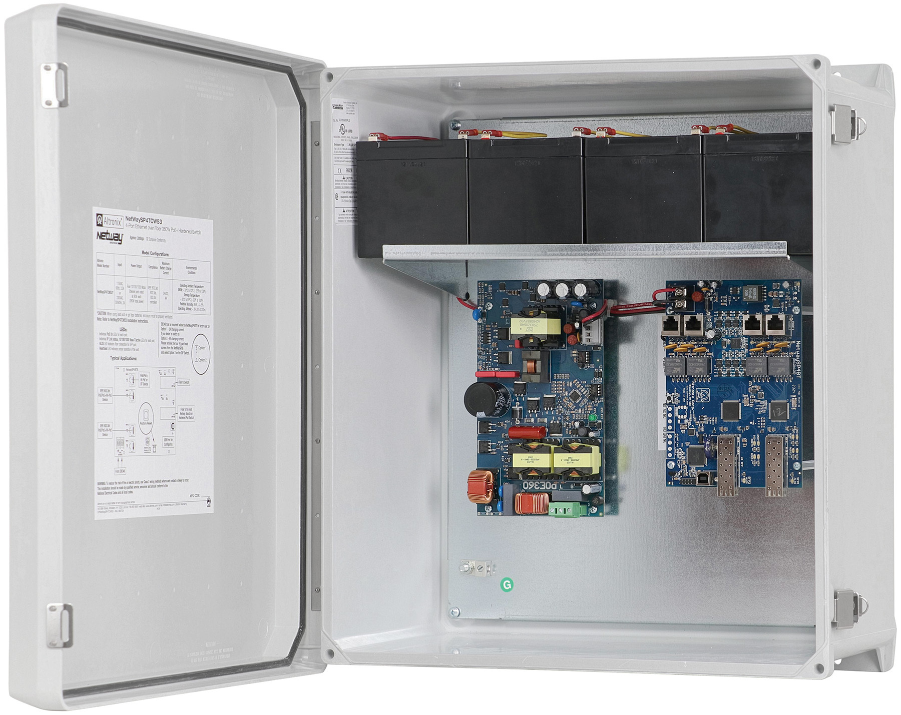 The Altronix NetWaySP4TCW53 is a 4-port hardened PoE switch in a NEMA 4/4X, IP66-11 rated enclosure, delivering up to 60W per port (240W total). Equipped with the EBC48 rapid battery charger, it ensures 24/7 uptime by leveraging lighting circuits with seamless battery backup. Embedded LINQ™ Technology enables remote monitoring, control, and diagnostics. Visit Altronix at GSX Booth 2115 to see it in action.